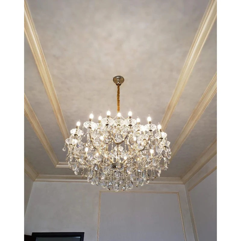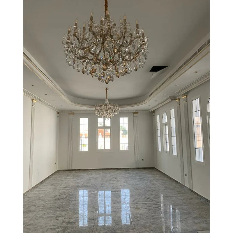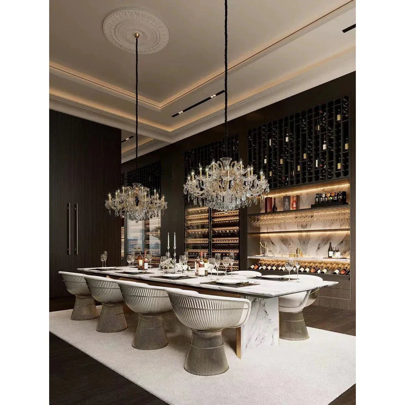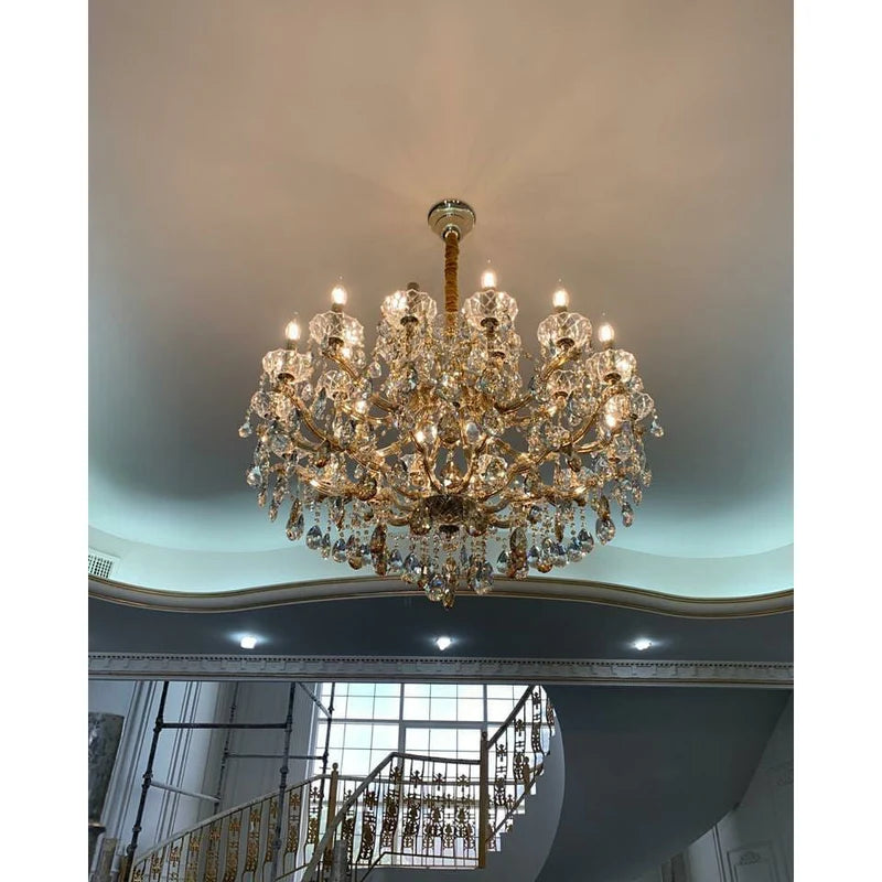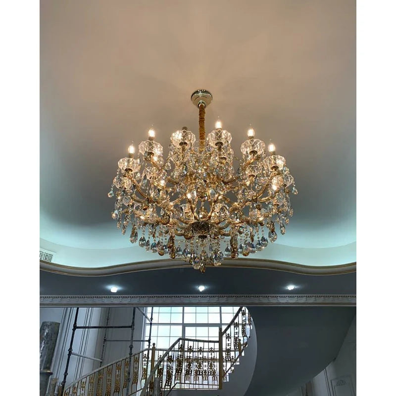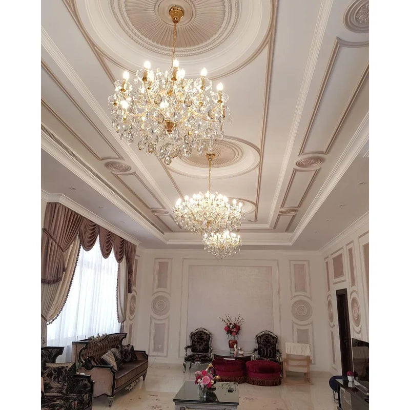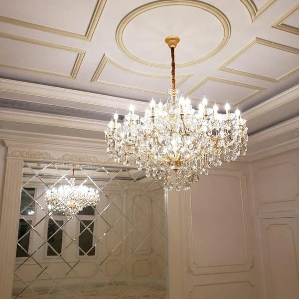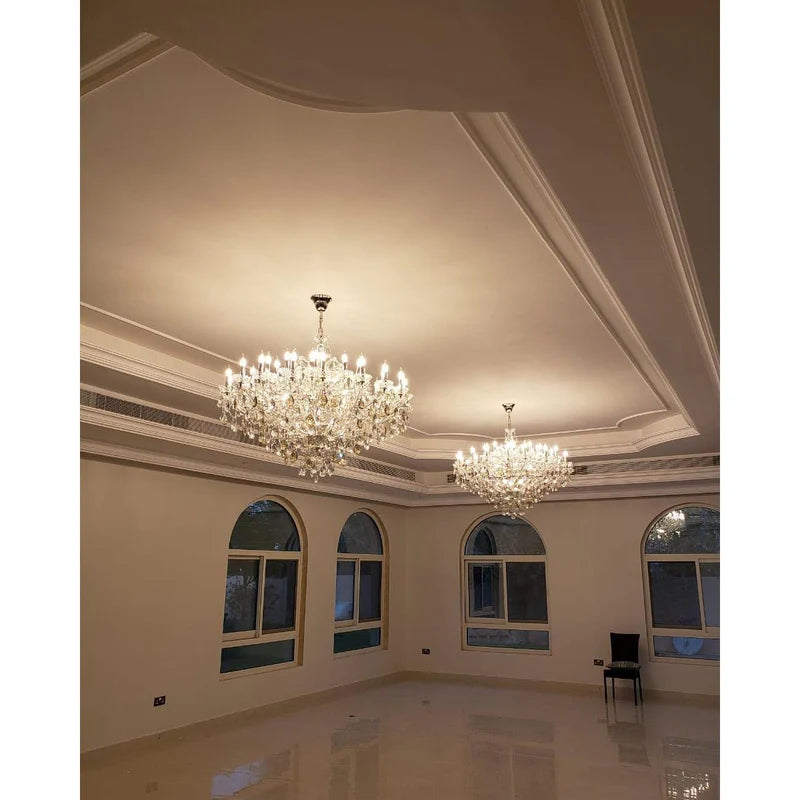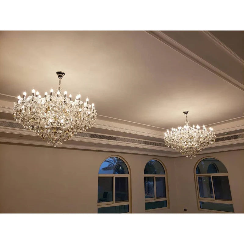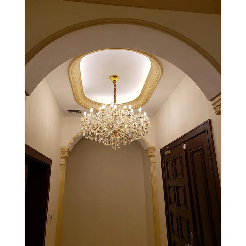With over 30 years experience mastering crystal chandeliers, and working closely with maestros in Italy, we have created some of the most beautiful Chandeliers to date. This classic Maria Theresa crystal chandelier is one of a kind with its perfect shape that renders an entire room's beauty owing it all to its sophisticated shape. Stunning hand crafted arms and quality crystal create an unsurpassed luxurious ambiance.