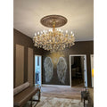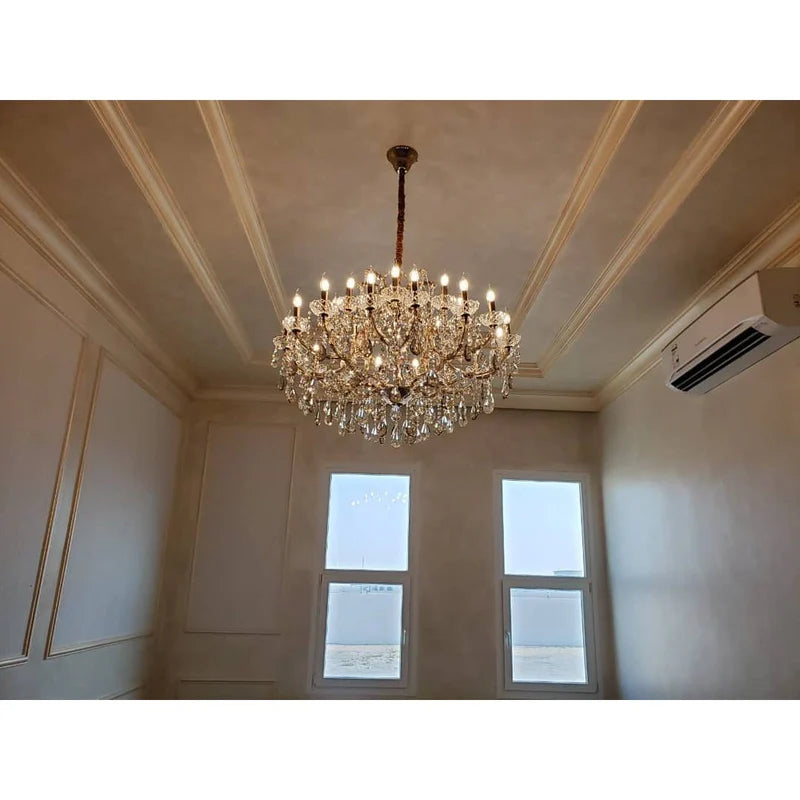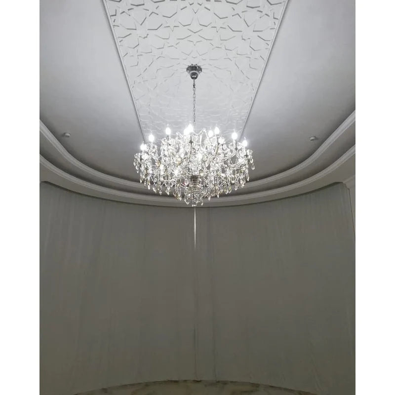 A perfect fit for a lower ceiling application with its width and shorter height, Also suitable as a Foyer Chandelier , and any large space. A spectacular very wide chandelier with its exquisite crystals will bring shine to your life.