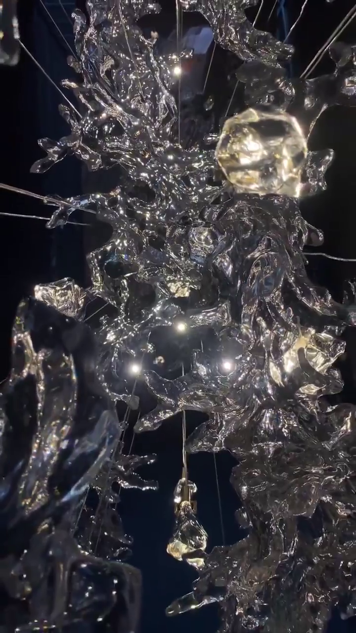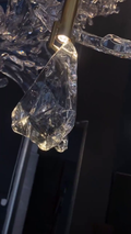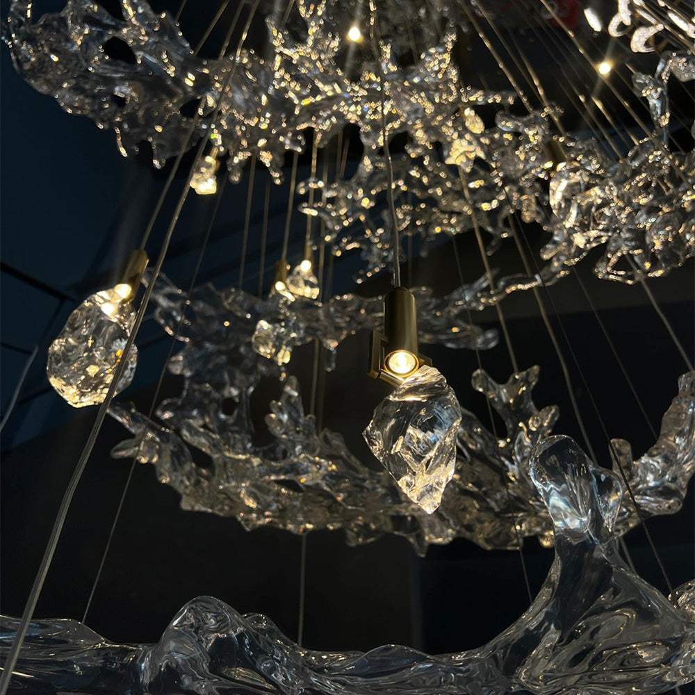 This luxury modern crystal chandelier is designed with eye-catching wave patterns for a stunning addition to your living room, staircase, or foyer. Crafted with high-quality crystal and metal, the eye is drawn to the unique design, no matter if the light is on or off.