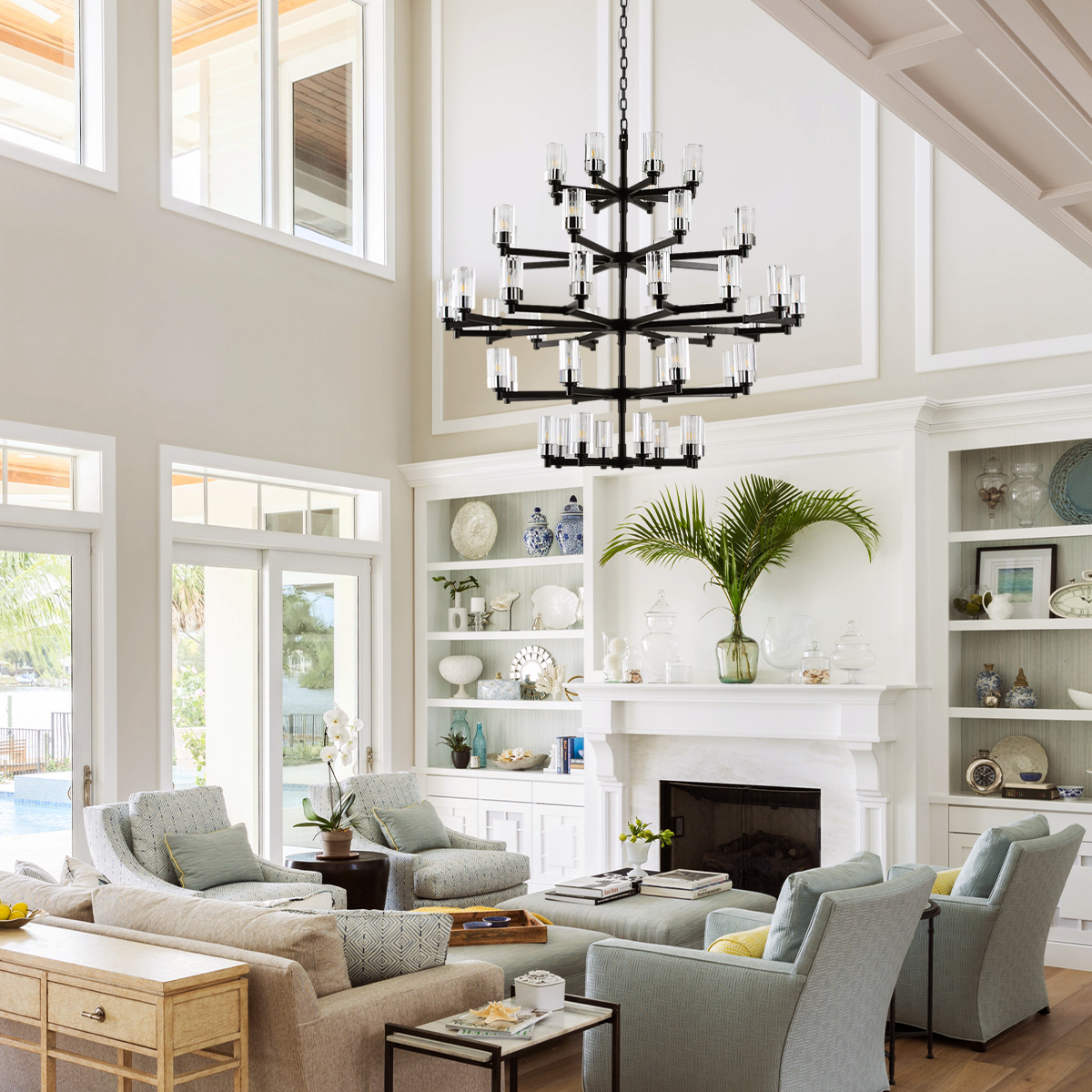 • At least 7 and half feet clearance from floor to bottom of chandelier.