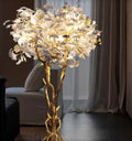 Luxury Creative White Ceramic Ginkgo Biloba Copper Branch Tree Floor Lamp for Living Room and Bedroom