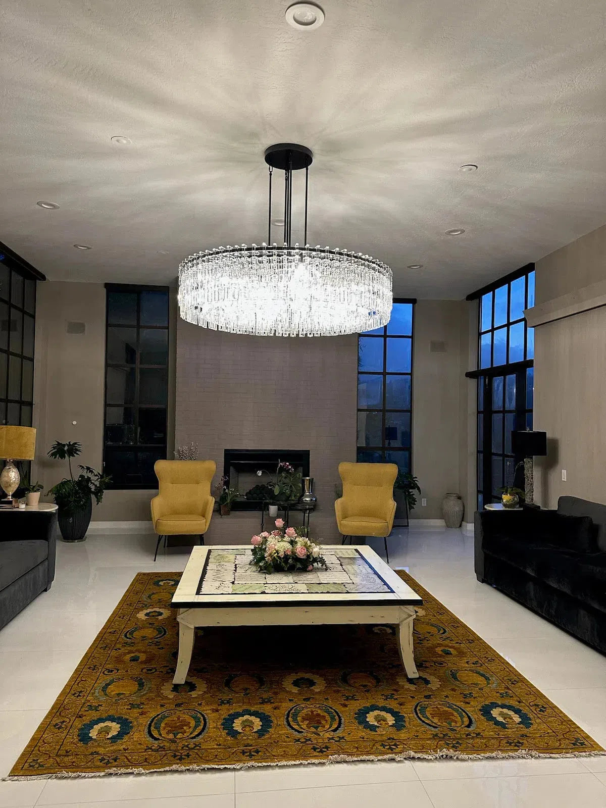 • At least 7 and half feet clearance from floor to bottom of chandelier.