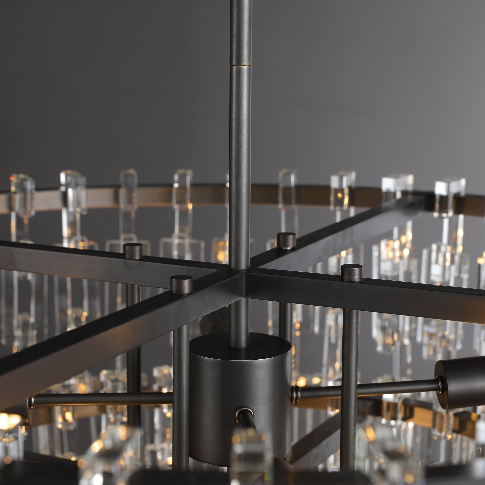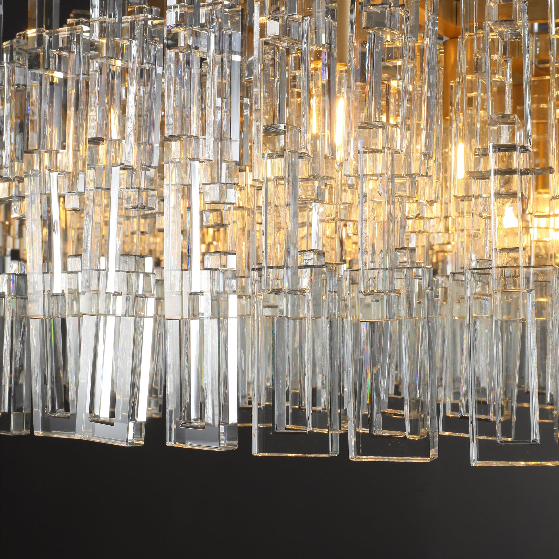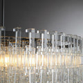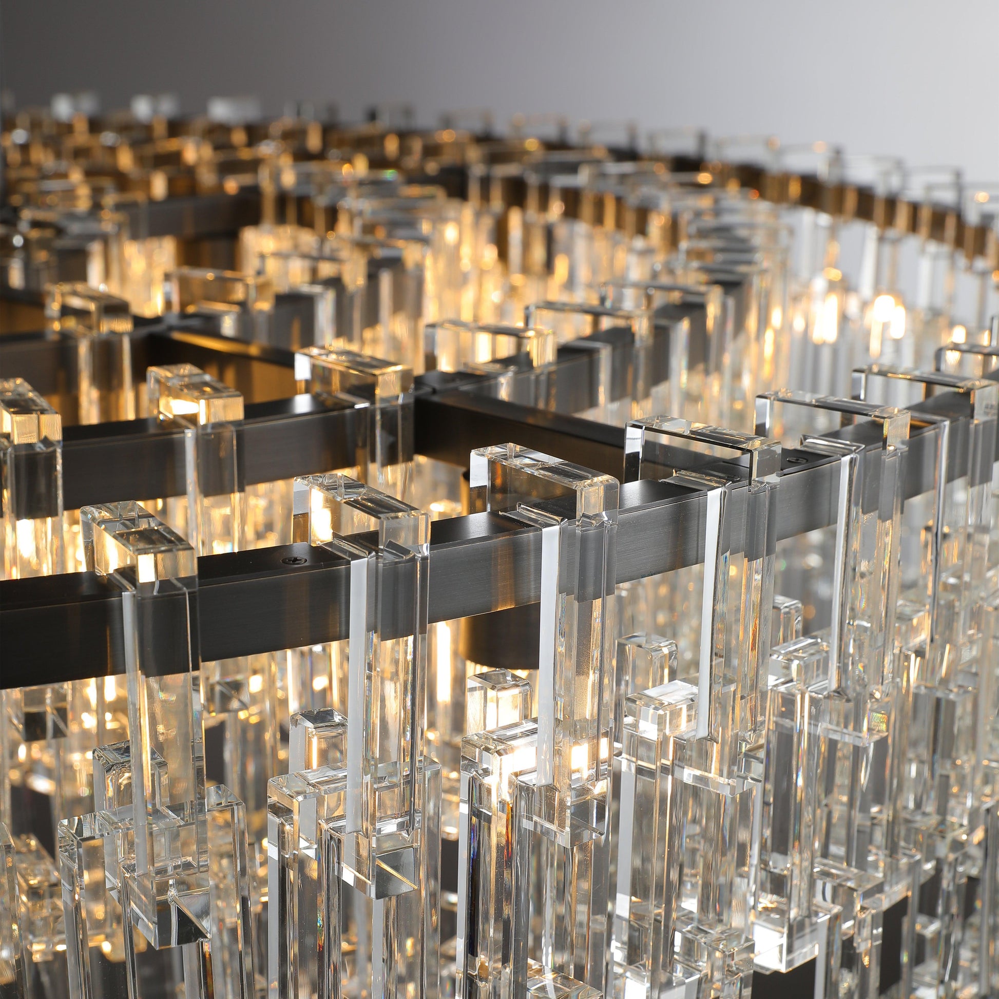 Drawing inspiration from the intricate interplay of industrial machined metal chains, this design reimagines interconnected open and closed links with stunning crystal glass. The pure and minimalistic chain links, crafted from over 800 crystals, hang without visible wires, creating a dazzling halo of brilliance that captivates and enchants.