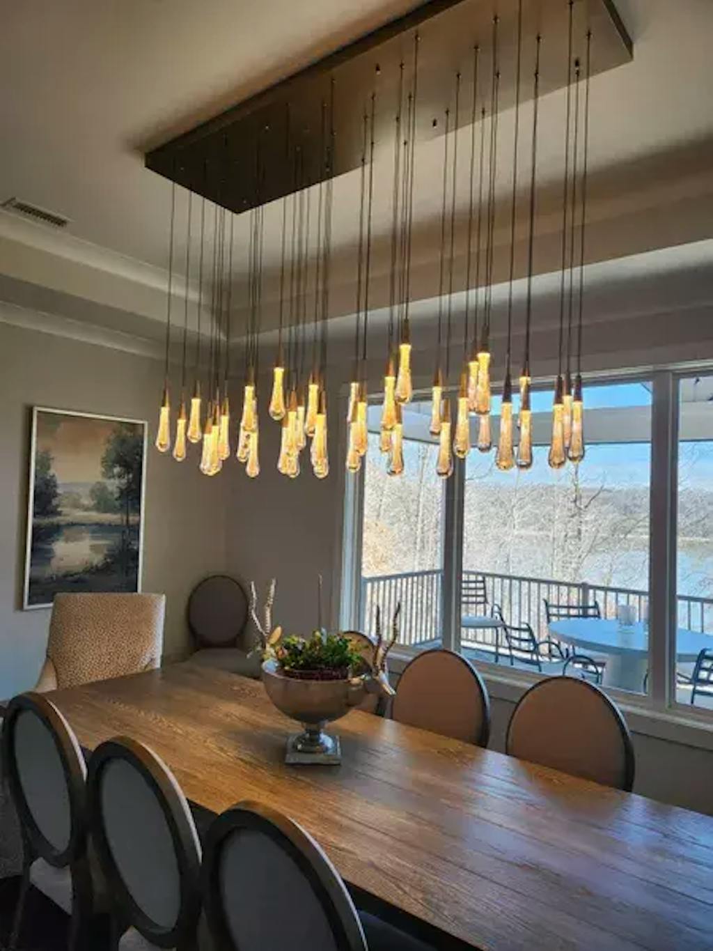 If you are hanging the chandelier above a dining table or kitchen island, chandelier’s bottom should be 30 to 36 inches away from the tabletop.