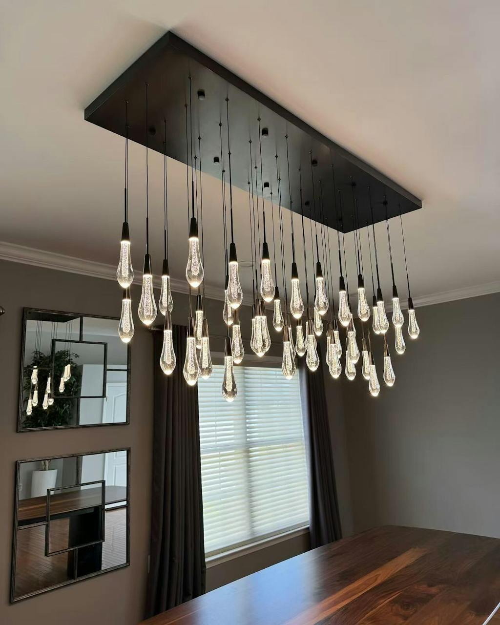 If you are hanging the chandelier above your dining table or kitchen island, you can also decide the size of the chandeliers based on the size of your dining table or kitchen island. We generally recommend that the length or diameter of the chandelier should be between 1/2 and 3/4 of the length of the dining table or kitchen island.
