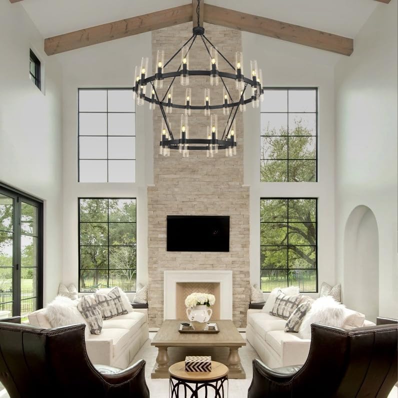 If you are hanging the chandelier above your dining table or kitchen island, you can also decide the size of the chandeliers based on the size of your dining table or kitchen island. We generally recommend that the length or diameter of the chandelier should be between 1/2 and 3/4 of the length of the dining table or kitchen island.